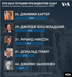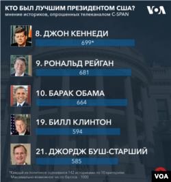 Билл Клинтон оказался на 19 позиции (историки особо отметили его навыки убеждения и экономическую политику).