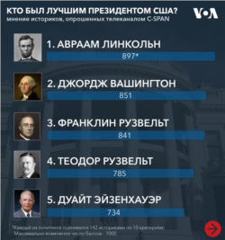 Телеканал C-SPAN опубликовал результаты опроса, цель которого – определить, кого экспертное сообщество считает лучшим президентом в истории США. В опросе, который проводится с 2000 года, приняли участие 142 специалиста по истории.